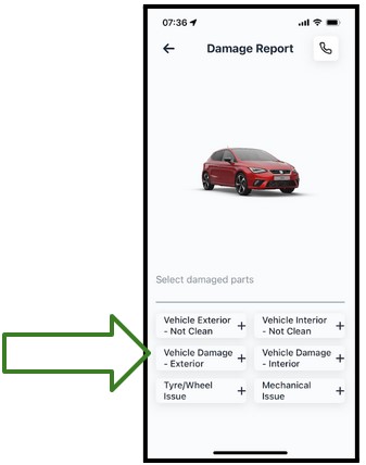 If you notice any issues with the mechanics of the vehicle that is non urgent, please report it at the start of the hire by selecting: