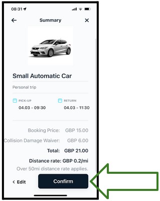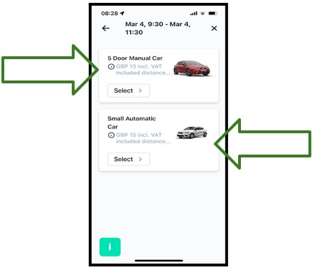 Select which vehicle options you would like to hire by clicking on the required vehicle.