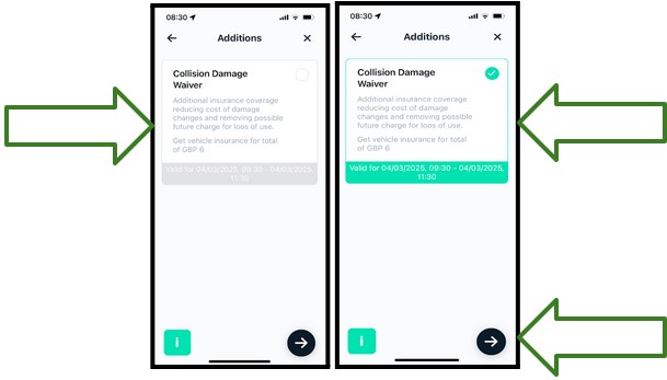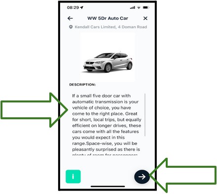 Click the forward arrow to continue. If you would like to change vehicle you can click the back arrow.
