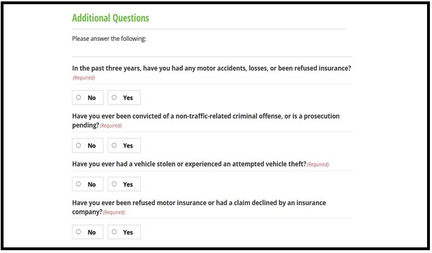 - The last part is to answer the 4 questions that are required as part of our insurance cover